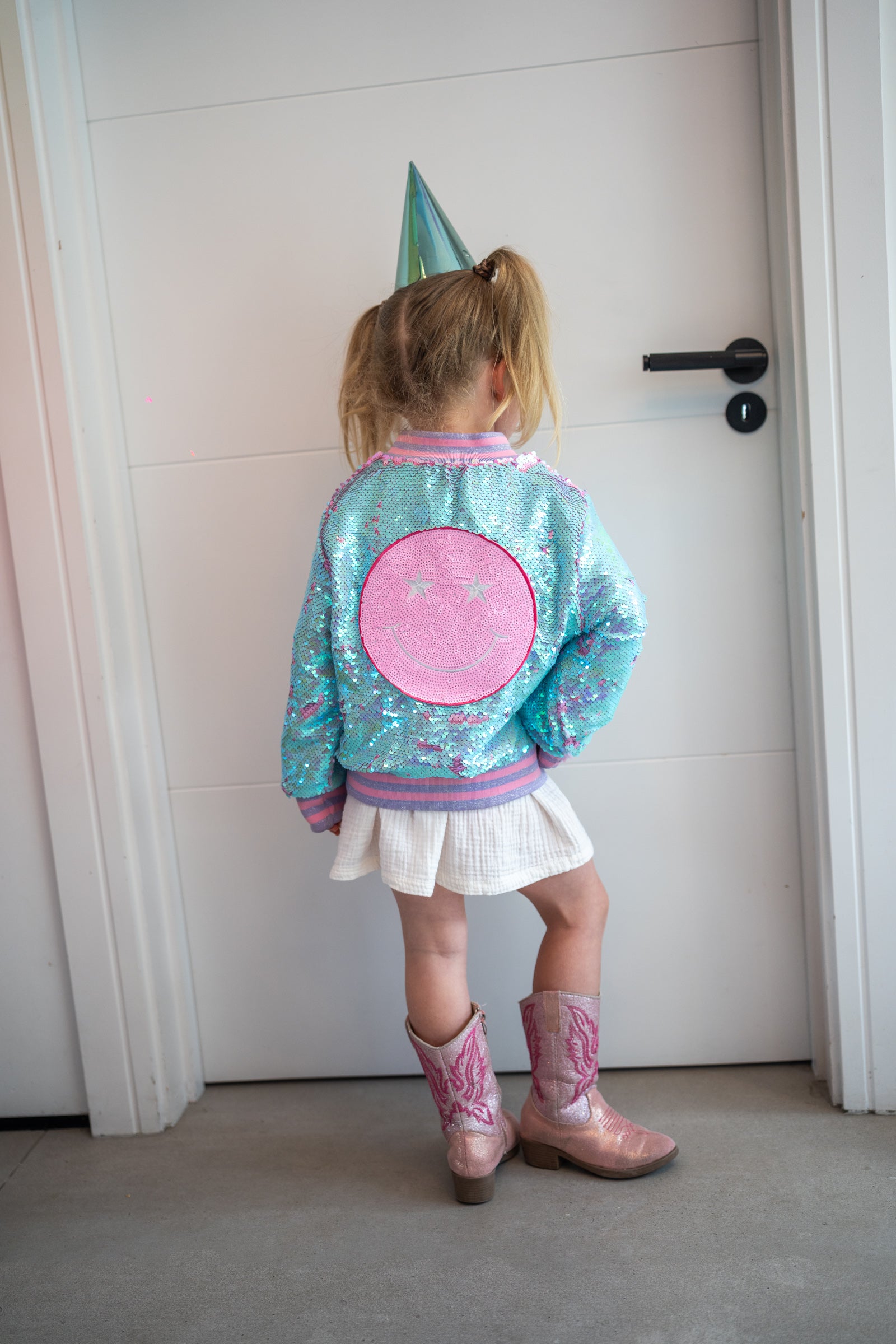 Lined with our signature star fleece lining with pockets. Flipping colour sequins.